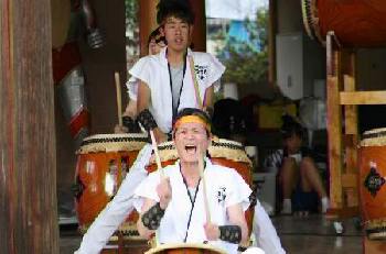 | 演奏最中から「和太鼓体験コーナーはまだか?」と 訴えるような子どもたちの眼差しに応えて 今回も「和太鼓体験コーナー」を設けました。 |