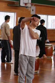 発表曲は左手でバチを抱え 「うりゃー」で終わります。 |
