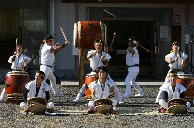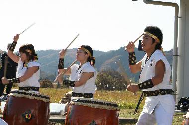 | 那珂川町定住促進住宅用地貸付事業「農ある暮らし『高手の里』現地見学会」が開かれ、県内外から申込みのあった58組中、45組99人の方々が那珂川町大山田下郷地内の『高手の里』を訪れた。 地元の方々やスタッフによる、とん汁や手打ちそば、鮎の塩焼きなどのおもてなしの前に、まほろば太鼓の歓迎演奏が行われ、たくさんのご声援をいただいた。 |