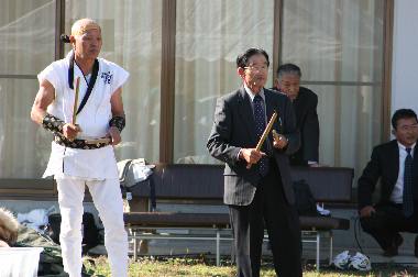 | 〔SESSION2002〕 会長も会主もバチでリズムを刻んでいます。 後方には川崎町長も・・・。 |