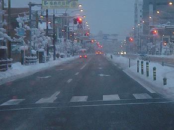 信号が全部「赤」!! ノロノロと走った国道4号、只今福島市を通過中! 左に曲がると福島市役所のようです。 |
