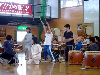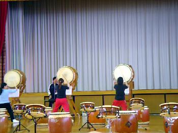 交歓演奏の トップバッターは岩手県氷上太鼓さん なぜかerikoセンセとreikoセンセが一緒・・・ |