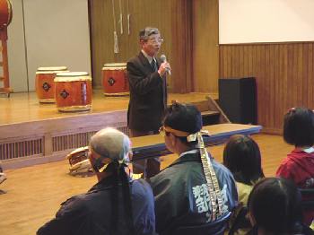 | 今年も、町長、議長はじめたくさんの方にお出でいただき打ち初め式を開くことができた。 これからも、子どもたちと一緒に100年200年と続く郷土芸能の礎を築く決意を新たにした。 |