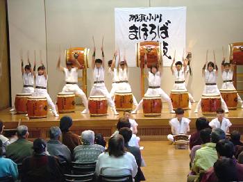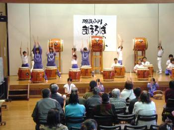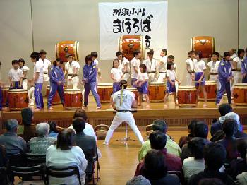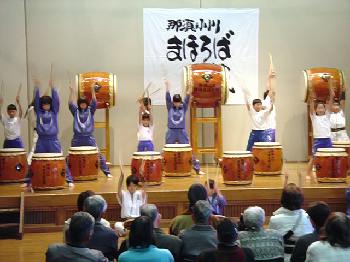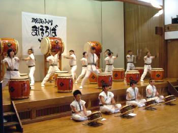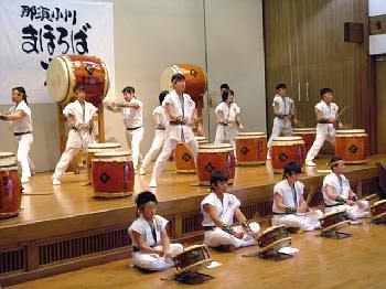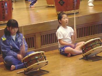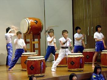 4曲目は「国造(くにづくり)」 大人用の曲を子どもたち中心に打ってます。 |