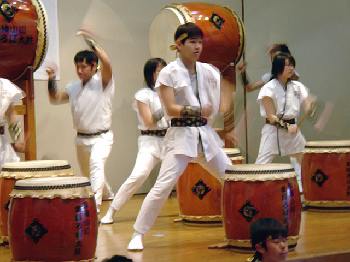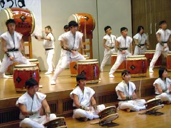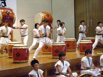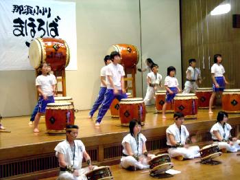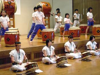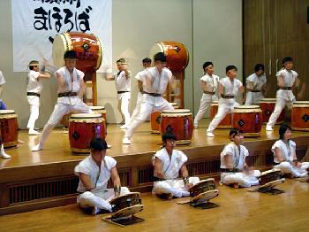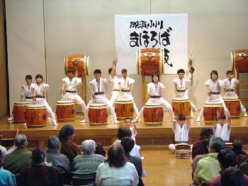 「翔け未来へ」 まほろば子供太鼓に中学生が混じっています。 |