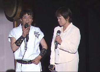 ![]() 筆者と司会者のいわゆる「カラミ」 司会は楡井京子さん |