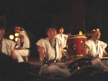![]() 〔古羅母//04〕 大太鼓1、中太鼓6、締太鼓4の小編成の演奏でした。 でも、澄みきった寒空のせいか、 町内(5q先)まで聞こえたそうです。 ホントの話です。 |