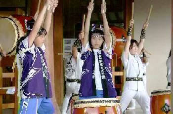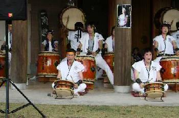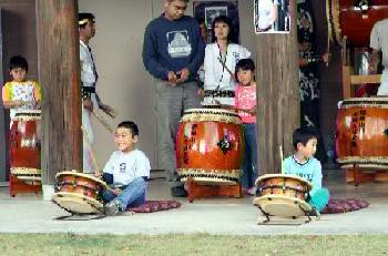 | 演奏最中から「和太鼓体験コーナーはまだか?」と 訴えるような子どもたちの眼差しに応えて 今回も「和太鼓体験コーナー」を設けました。 |
