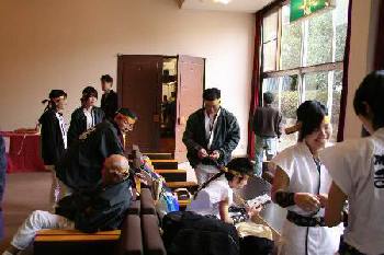 | 〔Joyful Beat 〜祭音〜〕 今回のジョイフルも締が二人でした。 その締を心配そうに?見ているのは当り鉦のわたくし管理人です。 |