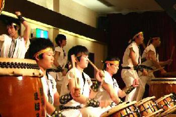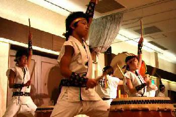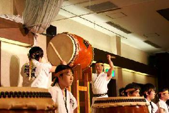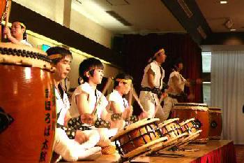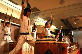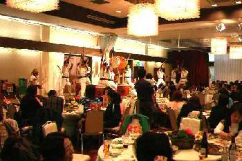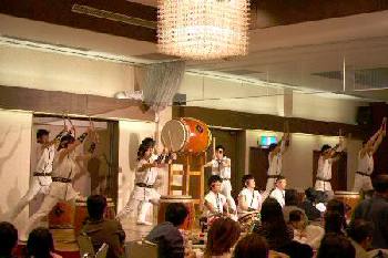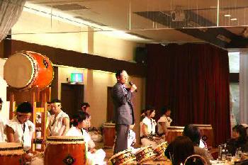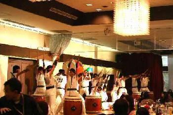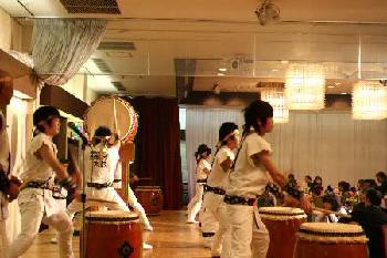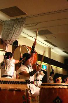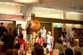 | 平成18年12月16日、南平台温泉ホテルで吉野工業所のクリスマスパーティーが開かれた。 昨年につづいて演奏依頼があり、快くお引き受けしての演奏会だった。まるっきり去年と同じ演奏曲目だったが、今年は「和太鼓体験」を最後に盛り込んだこともあって、会場が一体となった素晴らしい演奏会だった。 |