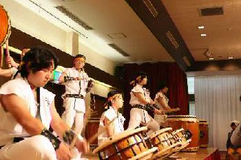 | 用意しているというのに演奏最中から「俺も打ちてぇー」との声が・・・ そんな要望にも応えて 和太鼓体験コーナーで大いに盛り上がりました。 |