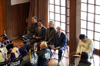 (左から町長、議長、助役、収入役、馬頭祝太鼓代表)