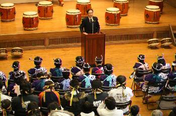 今年は、打ち初め式の前に、既に3回ほど公演を行っており、「どうしようか?」との声もあったが、「打ち初め式は打ち初め式。それに、子供太鼓に初舞台を終えていない4人の子どもたちがいる」ということで、例年どおりの開催の運びとなった。初舞台の4人は堂々の演奏をご披露し、ご来場の皆様方から暖かいご声援とたくさんの拍手をいただいた。