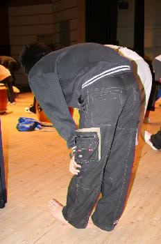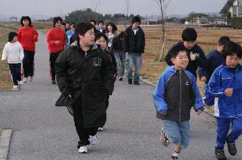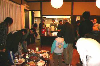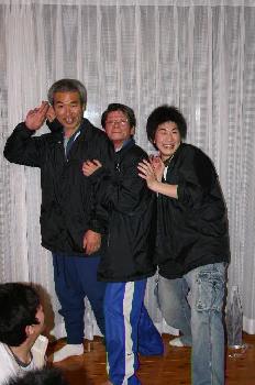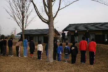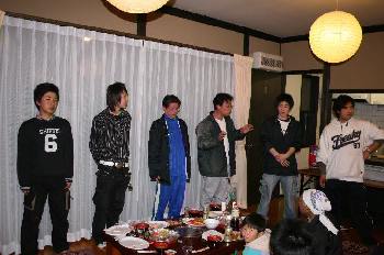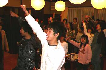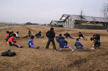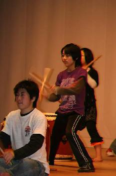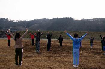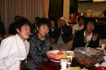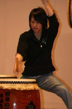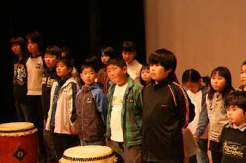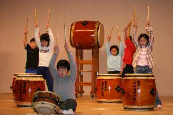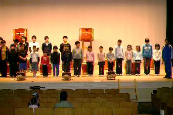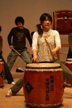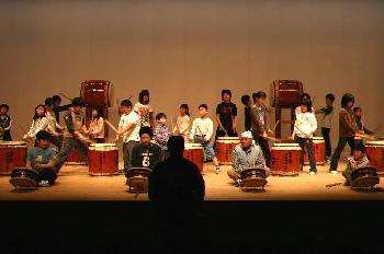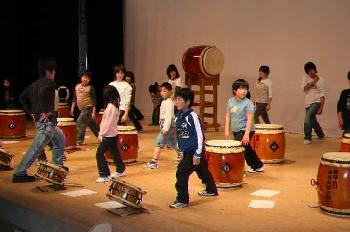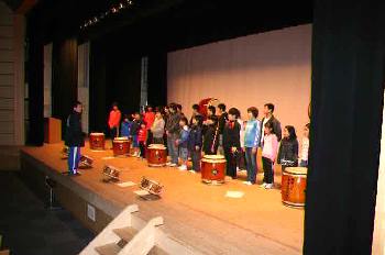 | 平成19年3月30日から31日にかけて、2年ぶりの「第3回まほろば太鼓合宿」が那珂川町小川総合福祉センター「あじさいホール」を会場にして行われた。ついこのあいだの日本太鼓秋田県講習会「体育会系打込み講座」のトレーニング方法を拝借し、ストレッチ、テンポ150での強歩、ランニングなどを盛り込んだ結構ハードな合宿となった。 合宿の最後には、保存会役員や子供太鼓打ち手の保護者を対象にミニコンサートを開き、体育会系打込み講座成果発表曲も「和太鼓E長調」と曲名を付けてお披露目をすることができた。 |