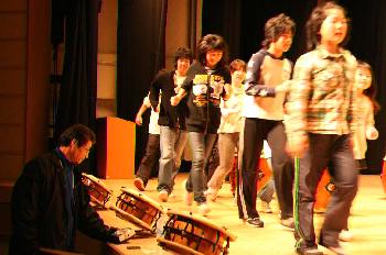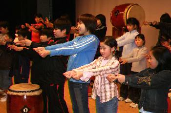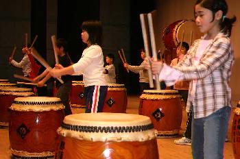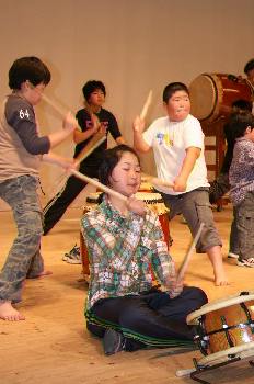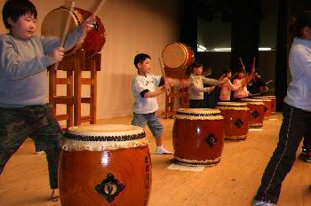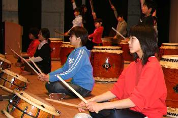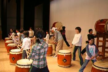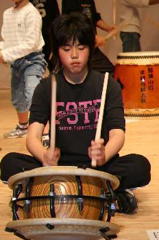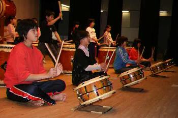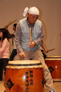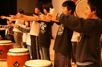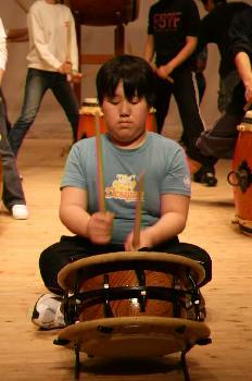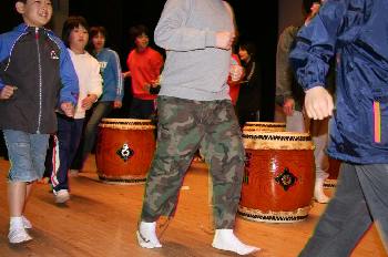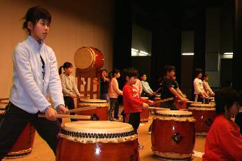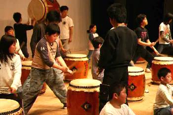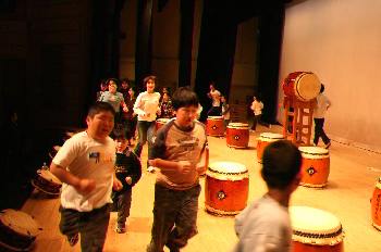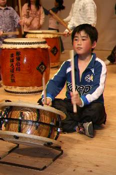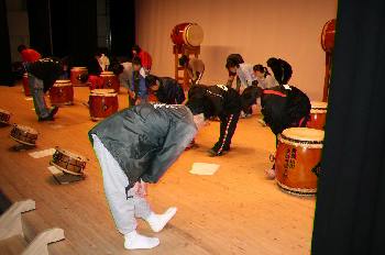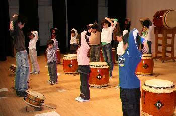 秋田県講習会にならって 締、中、大とすべての太鼓を打ってもらいました。 |