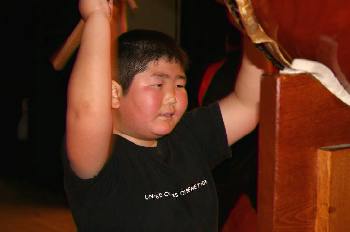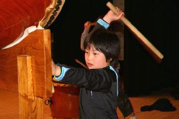 太鼓準備で チョットしたハプニングがあった 奨悟(しょうご)ですが、元気に打っています。 |