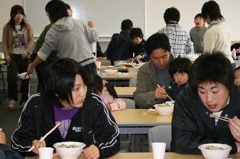 昼食はお母さんがた特製の「けんちんうどん」でした。 美味しかったです。 どうもご馳走様でした。 |