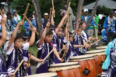 平成19年7月22日(日)、台風4号の影響で1週間遅れの夏まつり山車巡行が行われ、出発式では、山車巡行の安全を祈願してまほろば子供太鼓の演奏が行われた。