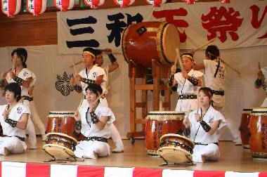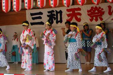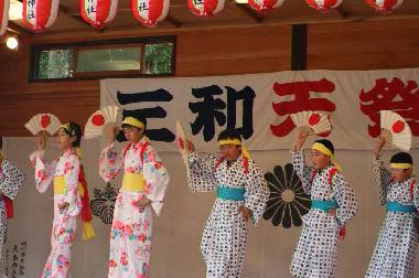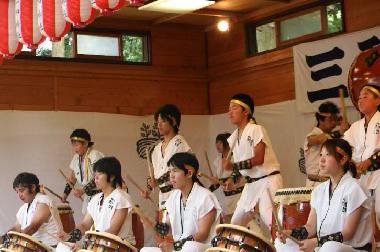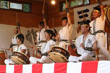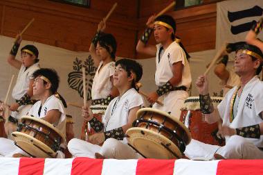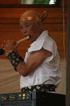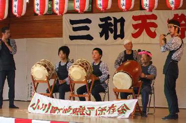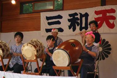 那珂川町三輪地区の三和神社境内「伝承館」で、毎年行われている郷土芸能で五穀豊穣を願う「三和天祭り」に今年も招かれ出演した。三和神社とは所縁のある那須家の祖、須藤権守貞信(すどうごんのかみさだのぶ)の物語「怪鬼岩嶽丸」を中心に全5曲を演奏し、盛大な拍手をいただいた。