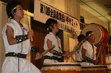 〔SESSION2002〕![]() 写真中央中太鼓の奨悟(しょうご)は大人太鼓初舞台です。 |