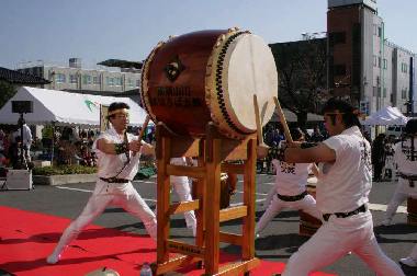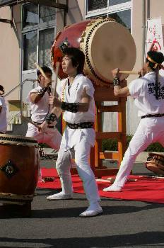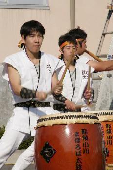 前日の公演に続き二日連続だったが、お天気にも会場のお客さんにも恵まれ気持ちよく太鼓を打ちことができた。