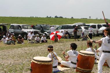 関東の四万十川といわれている那珂川を会場に、ダイワ主催による鮎つり大会が、炎天下の下今年も開かれた。表彰式に先立ってまほろば太鼓の演奏が行われ、熱中症寸前で4曲打ち終えた。