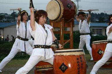 | 町村合併後3回目を数える「那珂川町民まつり」が開かれ、メインの花火大会に先駆けて、アユのつかみ取り大会、よさこいソーラン、そしてまほろば太鼓演奏と多彩なイベントが繰り広げられた。 |