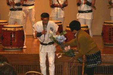 実は、役員会などで「まほろば太鼓演奏」を半ば強引にお願いした結果、3年ぶりの「還暦祝賀演奏」の運びとなった。久しぶりに故郷に帰ってくる友のために、和太鼓をとおして「あなたの故郷はこんなに元気です!」と、訴えたかったのだ。