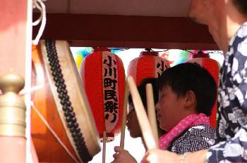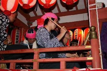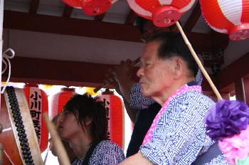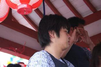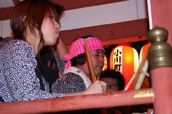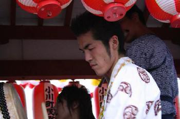 今年の新人彗(きらら) 練習の成果が上がり 何とか間に合って山車に乗れました。 |