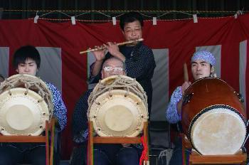 〔T.Waizumi理事〕 笛、大胴、付け太鼓と オールラウンドプレーヤーになりつつります。 |
