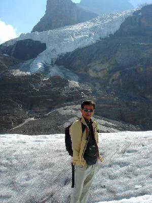 | コロンビア大氷原「アサバスカ氷河」にて |