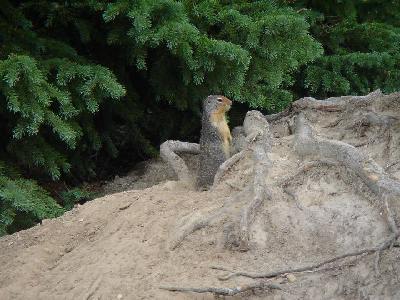 | ペイト・レイクの駐車場にて ガイドさんの話だと マーモットではなく「地りす」だそうです。 |