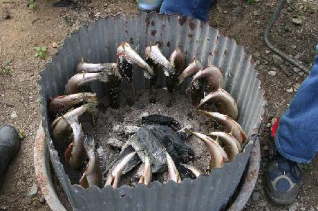 | 写真ではよく分かりませんが、かなり大型の「ニジマス」です。 It may be hard to tell from this photo, but these are huge rainbow trout. |