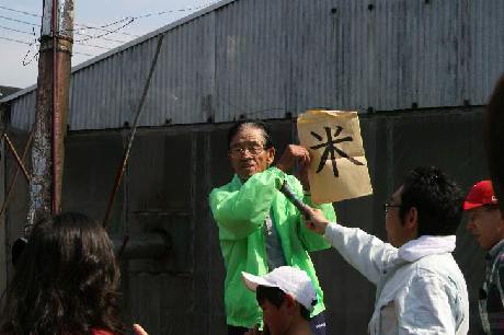 | 増子さんによる「米節」が今年も披露されました。 Mr. Mashiko performed his Rice Song this year, too, explaining the importance of rice and the roots of the rice character. |