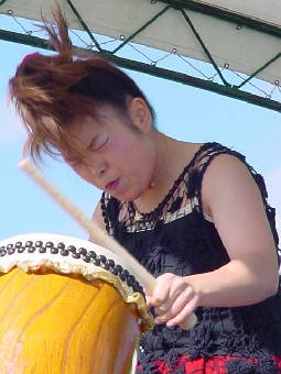 ![]() 蘭導/祭り太鼓 演奏者は高橋江里子(たかはしえりこ)さん |