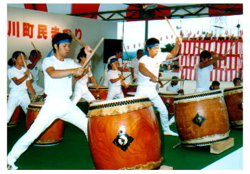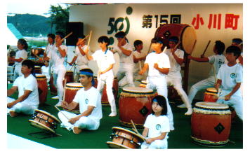 この頃は大太鼓がまだ1つしかなく大曲太鼓道場(現蘭導)から2つの大太鼓をお借りしての演奏だった。